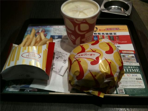 写真はいつ食べたか覚えてないけど、ロッテリアのえびバーガーです。