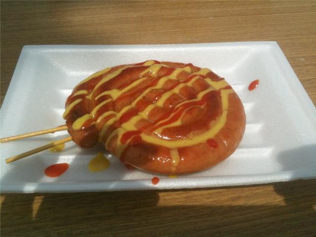 帰り際に海の家らしいところで、ぐるぐるウインナーを頂きました。